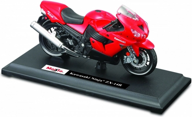 Detailný zberateľský model motocykla Kawasaki Ninja ZX-14 v mierke 1:18 poteší precíznym spracovaním, vernou konštrukciou a funkčným odpružením. Súčasťou je prezentačný podstavec s názvom motocykla, model však môže stáť aj samostatne vďaka výklopnému stojanu.