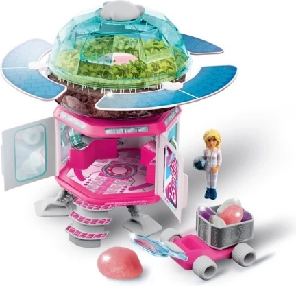 Táto inšpiratívna vedecká sada prenesie deti do sveta kozmických objavov. Postavia si špeciálnu základňu na experimenty s rastlinami a analýzou pôdy, zložia mini rover na prieskum neznámych planét a ozdobia modely pomocou nálepiek. Nechýba ani malý model astronautky Barbie, ktorá sprevádza deti na ich výpravách za poznaním.