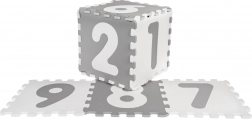 Táto sivo‑biela sada 9 kusov penových puzzle z materiálu EVA vytvára príjemne mäkké a tlmiace hracie miesto, ktoré izoluje od chladu podlahy a pomáha chrániť pri pádoch. Každý diel má vyberateľnú číslicu, takže dieťa trénuje rozpoznávanie tvarov a čísel, zatiaľ čo sa hrá.