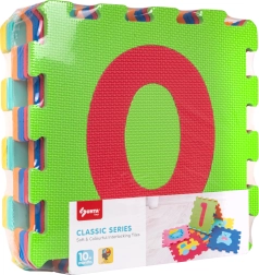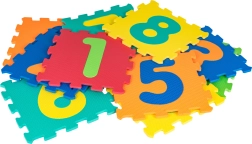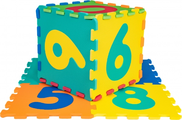 Edukna penová podložka s číslami kombinuje bezpečné hranie a učenie. Každý diel o rozmere cca 32 × 32 × 1 cm má vyberateľné číslice, vďaka ktorým si deti precvičia jemnú motoriku, rozpoznávanie tvarov a farieb aj prvé počítanie. Z 10 dielov ľahko vytvoríte hraciu plochu alebo ich prepojíte do priestorových útvarov (napr. kocky).
