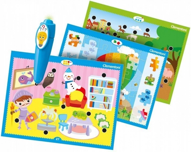 Vzdelávacia hra Moje interaktívne pero od Clementoni je navrhnutá tak, aby rozvíjala zručnosti a vnímanie okolitého sveta u detí vo veku 3-6 rokov. Ponúka viac než 1000 kvízov a 120 vzdelávacích aktivít, ktoré pokrývajú širokú škálu tém pre predškolákov.