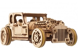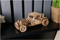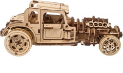 Model je navrhnutý tak, aby bavil pri stavbe aj pri jazde. Po starostlivom „rozbehnutí“ podvozku si užijete hladký chod prevodov a dynamický rozjazd. V prírodnom dreve vyzerá šik, ale pokojne si ho môžete natrieť farbou podľa vlastného štýlu. Skvelý darček pre fanúšikov hot rodov, mechaniky a dizajnu.