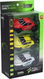 Trojica autíčok prináša jednoduchú a chytľavú hru – stačí ich natiahnuť dozadu a pustiť. Odolné prevedenie a príjemné rozmery zabezpečujú pohodlné uchopenie aj pre menšie deti, zatiaľ čo živé farby a detailné spracovanie podnecujú predstavivosť a rozvoj motoriky.