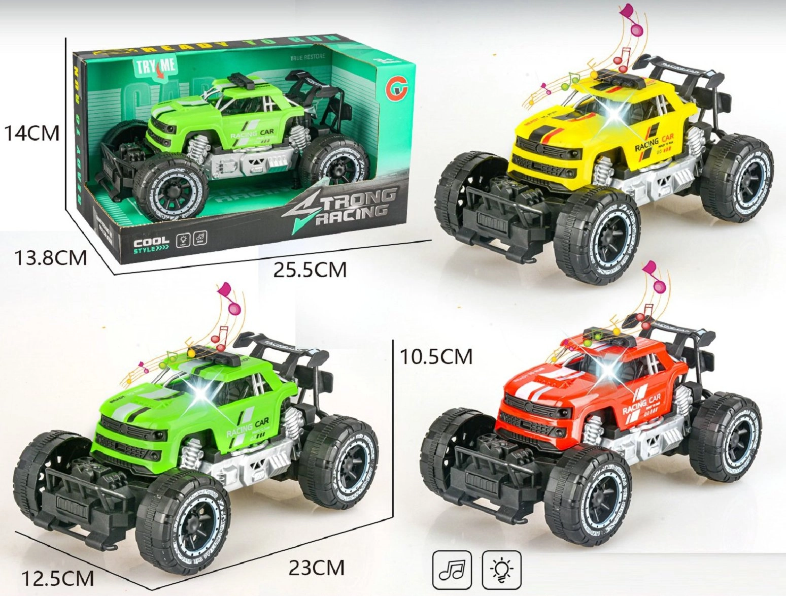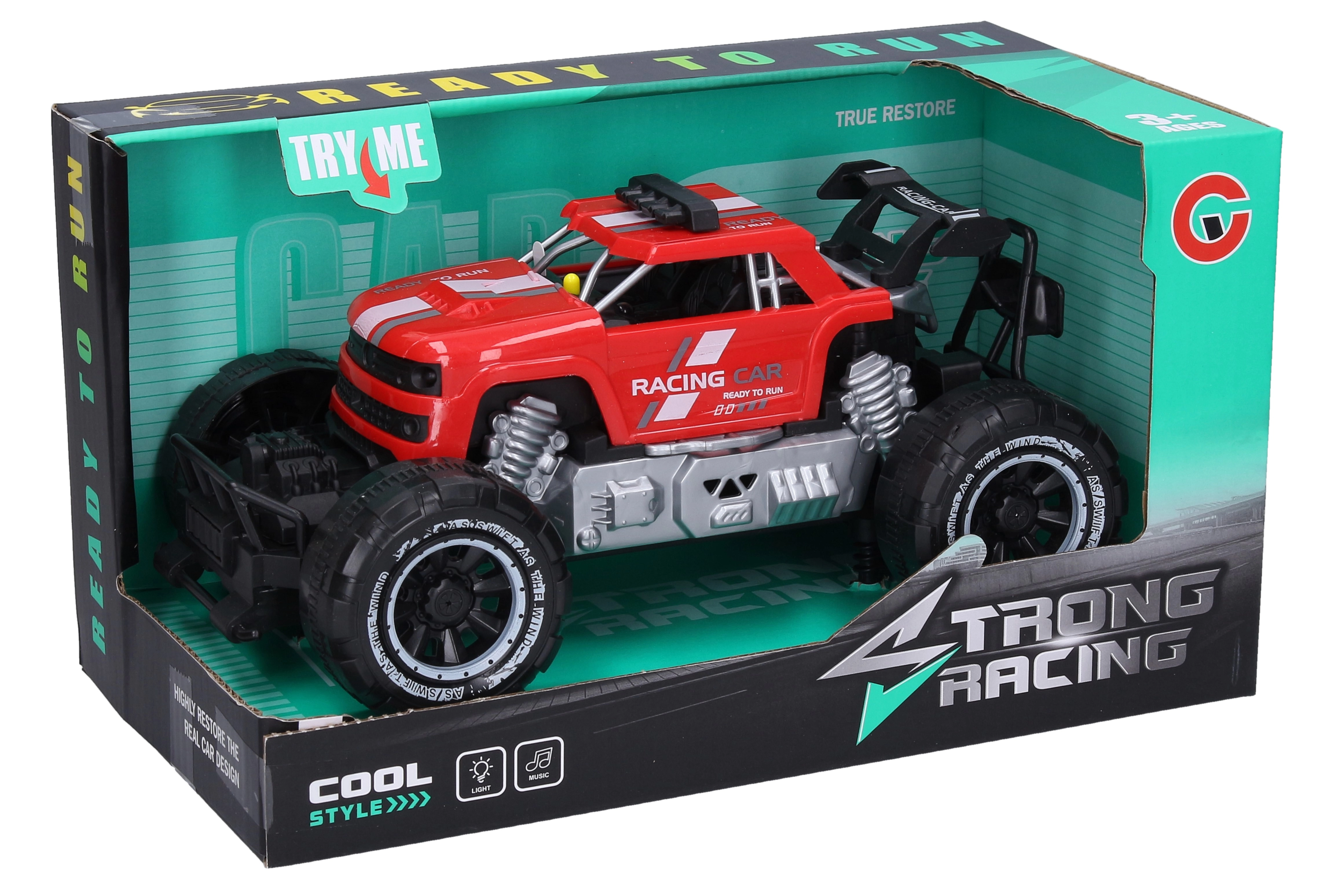 Robustné terénne auto na zotrvačník prináša veľa akcie a zábavy. Ponúka svetelné a zvukové efekty aktivované tlačidlom v kabíne, kompaktné rozmery 23 × 12,5 × 10,5 cm a je pripravené na jazdu hneď po vybalení vďaka 3× AG13 batériám v balení.