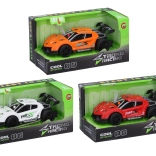 Kompaktné závodné autíčko na spätné natiahnutie poteší malých aj veľkých fanúšikov rýchlej jazdy. Ponúka svetelné a zvukové efekty aktivované tlačidlom v kabíne, je pripravené na jazdu vrátane batérií a dostupné v troch farebných variantoch.