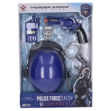 - Pištoľ 20 cm (akustické zvukové efekty), policajný odznak, vysielačka, putá s kľúčom, prilba