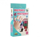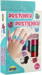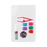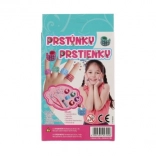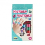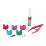 Praktická sada obsahuje prstienky, lepidlo, pinzetu aj farebné kamienky – deti môžu začať tvoriť hneď po otvorení.