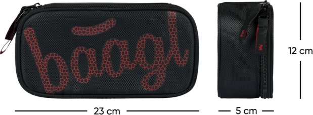 Tento peračník má moderný a štýlový dizajn s nápisom 'baagl', ktorý sa hodí ku každému školskému štýlu.
