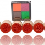 Integrovaná poduška vo farbách oranžová, ružová, zelená a hnedá umožní pestré odtlačky bez ďalšieho vybavenia.