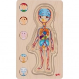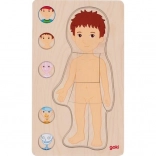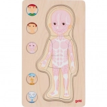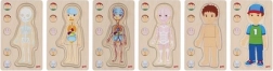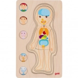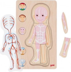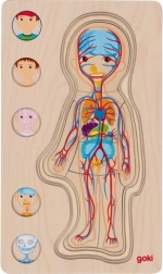Drevené puzzle ľudské telo – chlapec je ideálna pomôcka pre zvedavé deti, ktoré chcú nahliadnuť pod povrch. Päť vrstiev postupne ukazuje kožu, svaly, vnútorné orgány, krvný obeh a kostru. Každé zloženie či zloženie vrstvy odhalí novú časť tela a podporuje prirodzenú túžbu po poznaní.