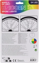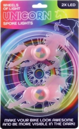 Zvýšte svoju viditeľnosť a pridajte trochu kúzla do svojej cesty na bicykli vďaka týmto štýlovým LED svetielkam na bicykel s motívom jednorožcov. Balenie obsahuje dva svetelné prvky, ktoré ľahko pripevníte k ráfrom vášho bicykla.
