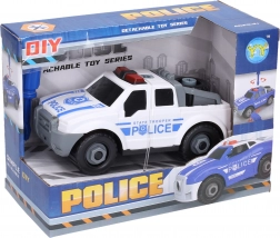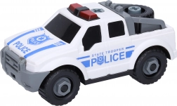 Zábavný stavebný model pre deti: skrutkovací policajný pick-up s dĺžkou 17 cm s voľne otočnými kolesami. Balenie obsahuje auto a krížový skrutkovač s praktickým kľúčom na matice v rukoväti. K dispozícii sú 2 farebné varianty – biela a modrá.
