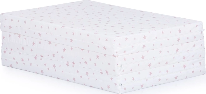 Skladacia matrac Chipolino s rozmermi 120x60 cm je navrhnutá tak, aby pasovala do štandardnej detskej postieľky. Vďačí za to svojej kompaktnej konštrukcii, ktorá uľahčuje jej používanie aj údržbu. Poťah matraca je zdobený ružovými hviezdami, čo prináša jemný a príjemný vzhľad detskej izbe.