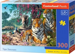 Puzzle Tigrie útočisko vás zavedie do krásneho a pokojného prírodného prostredia s roztomilými tigrami. S týmto 300-dielnym puzzle sa môžete ponoriť do relaxačnej aktivity, ktorá zároveň posilňuje sústredenie a trpezlivosť.