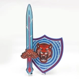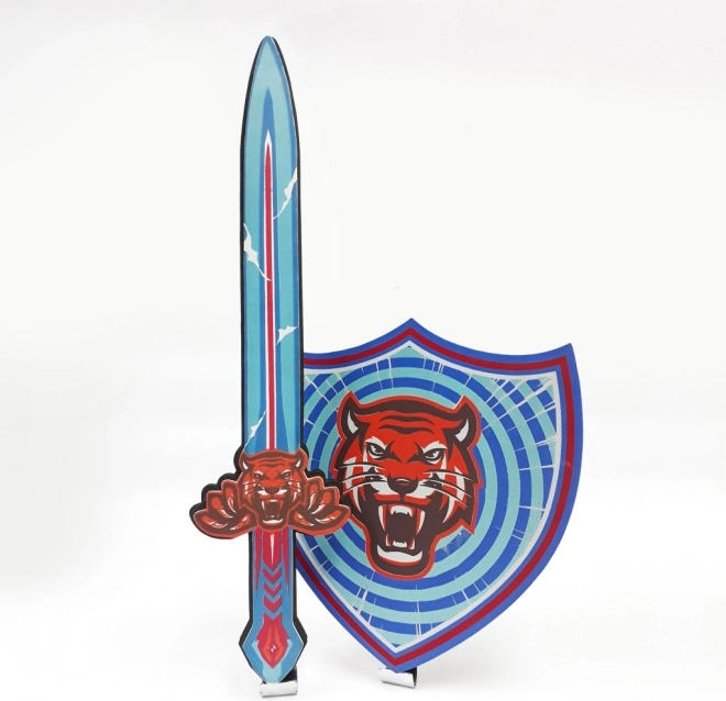 Bezpečná súprava pre malých bojovníkov: penený meč a štít s motívom tigra. Ľahké, odolné a ideálne na detské hry aj ako doplnok ku karnevalovému kostýmu. Vyrobené z mäkkej peny na bezpečné hranie bez rizika poranenia.