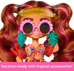 Mini bábika BARBIE Extra Fly Minis je ideálna pre deti, ktoré milujú módu a imaginatívne hranie. Jej tropický look zahŕňa krásne plavky, zelené sandálky a palmové náušnice, ktoré podčiarkujú letnú atmosféru. Vďaka kompaktnej veľkosti je skvelá na cesty a ľahko sa zmestí do batôžka.