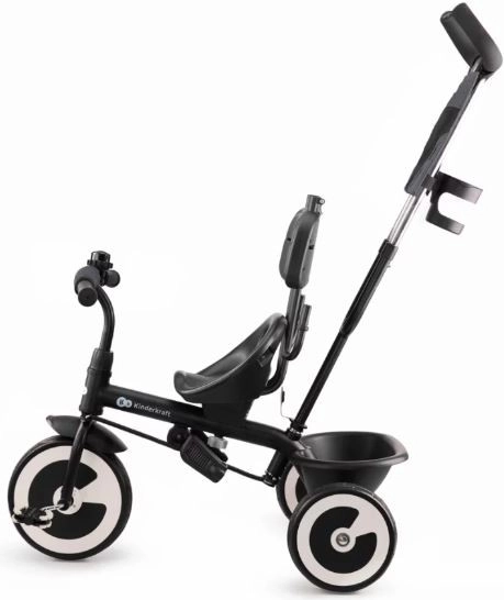 - Regulovateľná rukoväť pre rodičov – uľahčuje ovládanie trojkolky počas prechádzky.