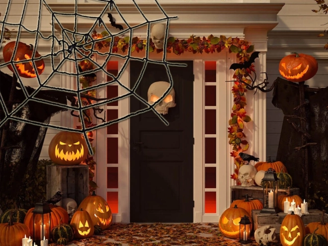 Veľká čierna pavučina okamžite premení verandu či vstupné dvere na strašidelnú scénu. Ideálna na vítanie koledníkov a zdobenie domova.