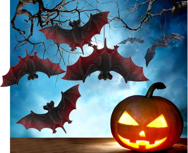Vytvorte strašidelnú halloweenskú atmosféru behom chvíľky! Táto sada 4 realistických netopierov z odolného plastu/gumy je ideálna na výzdobu domu, záhrady aj párty. Jednoducho ich zavesíte na vetvu, pavučinu či policu a získate efektné dekorácie s výraznými čierno‑červenými krídlami.