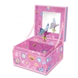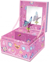 Uložte svoje poklady do pôvabnej šperkovnice s motívom motýľa. Po natiahnutí a otvorení začne hrať jemná melódia, ktorá poteší každú malú parádnicu. Šperkovnica je vyrobená z pevného a odolného papiera s hladkou povrchovou úpravou, ideálna na každodenné používanie. Skvelý doplnok pre malé princezné a bezpečné miesto pre prvé šperky a drobnosti.