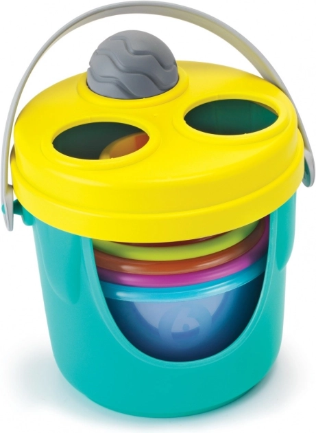 Všetkých 14 častí pohodlne uložíte do vedierka s vekom a rukoväťou. Po hraní je rýchlo upratané a hračka je pripravená na cesty.