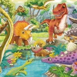 Objavte svet pravekých tvorov s trojbalením puzzle, ktoré prináša tri rôzne dinosaurie motívy. Každé puzzle má 24 dielikov a je navrhnuté tak, aby deti bavilo aj rozvíjalo. Skladačky sú veľkostne prispôsobené detským rúčkam a ponúkajú jasné farby aj prehľadné tvary.