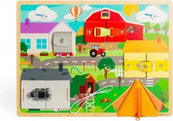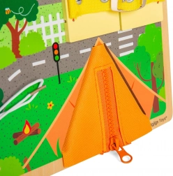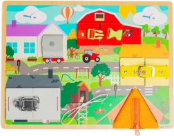 Objavte zábavnú a vzdelávaciu hračku pre deti od 3 rokov – motorickú dosku s rôznymi zámkami, prackami a zipsami, ktorá rozvíja jemnú motoriku, koordináciu ruka-oko a praktické zručnosti. Každé otvorenie odhalí skrytú scénu a podnecuje kreativitu a zvedavosť. Vyrobené z drevá s certifikáciou FSC s ohľadom na prírodu.