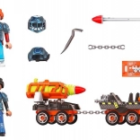 Vydajte sa s Aylou a Samuom na napínavú misiu do Dino Mine. Robustný vozík s raketami plynule jazdí po koľajniciach a vďaka funkčnému delu prináša množstvo akčných herných momentov. Skvelý doplnok pre všetkých, ktorí si chcú rozšíriť svoju zbierku Playmobil Dino Rise.