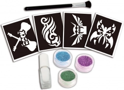 Súprava je perfektná na narodeninové oslavy, detské párty aj domáce tvorenie. Podľa priloženého návodu vykúzlite za chvíľku trblietavé obrázky na pokožke, ktoré pritiahnu pozornosť.
