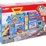 Užite si akčnú zábavu doma aj na cestách s touto prenosnou pretekárskou stanicou s rozmermi 55 × 20 × 25 cm. Set ponúka svetelné a zvukové efekty, 2 autá s voľnobežnými kolesami, dopravné značky a nálepky. Batérie 3× AG13 sú súčasťou balenia, rovnako ako obrázkový návod na jednoduché zostavenie.