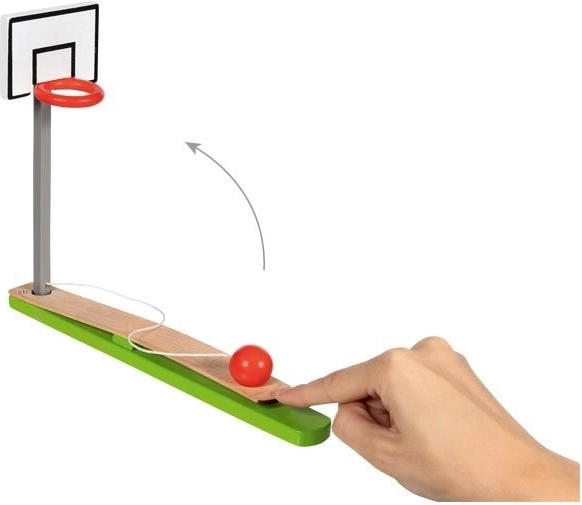 Hra je navrhnutá tak, aby pomohla cvičiť koordináciu pohybov a rozvíjať zručnosť. Loptička je pripevnená šnúrkou, takže nezmizne počas hrania. Pomocou pohodlne umiestnenej páky môžete simulovať streľbu na kôš, čo poskytuje interaktívny herný zážitok.