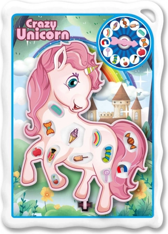 Zábavná vibračná hra Jednorožec s pinzetou pre 1–2 hráčov. Obsahuje ruletu, 12 predmetov a samolepky. Trénuje jemnú motoriku. Na 3× AA batérie.