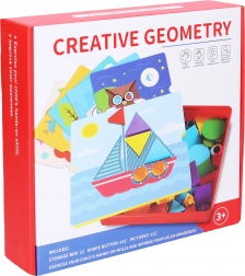 Kreatívna mozaika s geometrickými tvarmi pre deti podporuje jemnú motoriku, logické myslenie a tvorivosť. Balenie obsahuje podložku 25 × 25 cm, 22 tvarov a 12 šablón na jednoduché skladanie obrázkov.