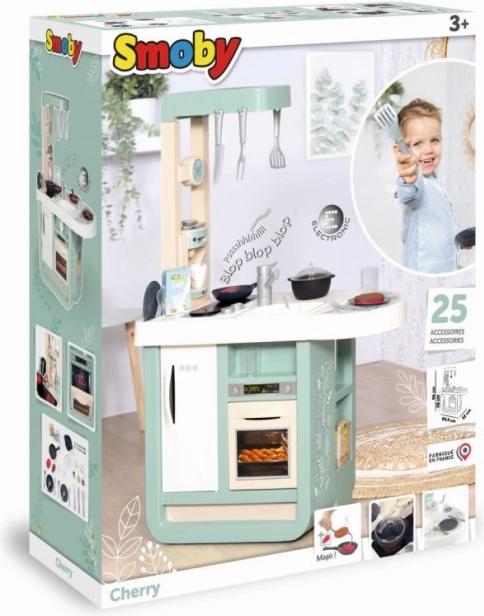 Kuchynka Bon Appetit Cherry je detská kuchynka ponúkajúca moderný dizajn a širokú škálu príslušenstva. Vďaka svojmu jemnému pastelovému sfarbeniu je ideálna ako do detskej izby, tak do obývacej izby. Deti si môžu hrať na kuchárov s rozohriatymi platňami, rúrou a digestorom, ktoré vydávajú elektronické zvuky varenia.