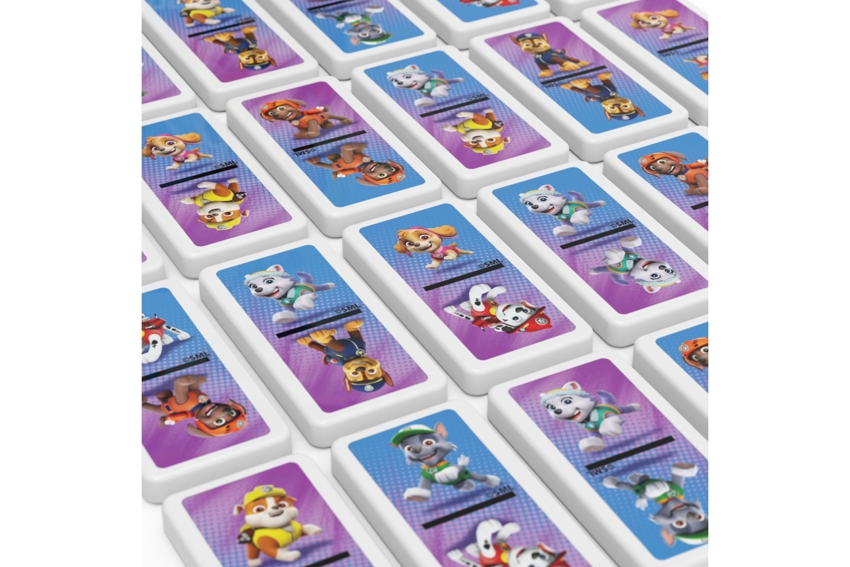 Objavte čaro klasickej hry v modernom detskom prevedení s obľúbenými postavičkami Chase, Skye, Marshalla, Rubblea, Rockyho, Zumy a Everest. Domino Tlapková patrola poteší chlapcov aj dievčatá a podporí ich pozornosť, logické myslenie a trpezlivosť.
