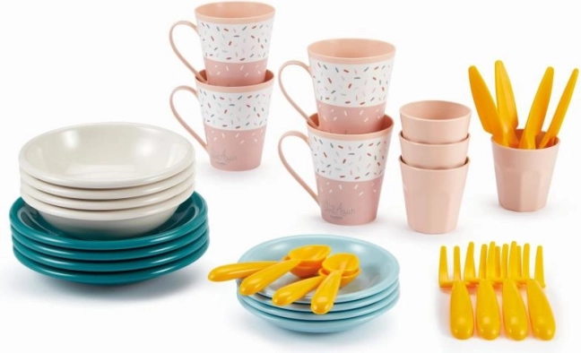 Táto plastová sada riadu je ideálna pre všetkých, ktorí chcú usporiadať neformálny piknik alebo popoludnie na záhrade. 32 dielov tejto sady zahŕňa taniere, dezertné tanieriky, misky, hrnčeky, poháre a príbor, všetko z ľahkého a odolného plastu. Praktická krabica pomáha jednoduchému prenášaniu a deti sa môžu bezpečne zapojiť do prípravy jedla. Krabica zároveň slúži ako servírovací stolík.