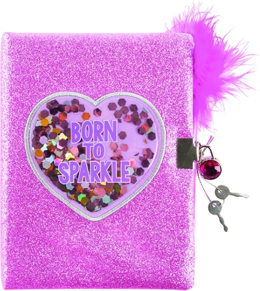 Denník s trblietavými a pevnými doskami. Obsahuje 160 farebných strán, pierko a zámok s kľúčikmi. Vhodné od 6 rokov.