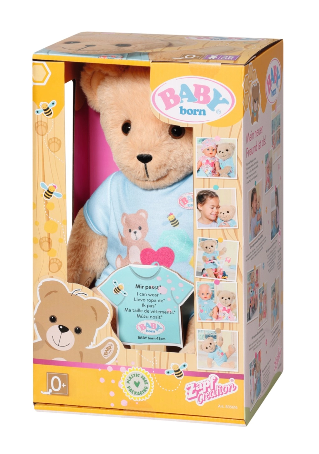Roztomilý medvedík BABY born je hebký parťák na maznanie aj hranie, navrhnutý tak, aby skvele doplnil svet bábik BABY born 43 cm. Má mäkké telíčko, pohyblivé ruky a nohy aj otáčaciu hlavičku pre jednoduché prezliekanie. Nosiť môže takmer všetko oblečenie a doplnky BABY born (okrem topánočiek) a súčasťou je aj knižka priateľstva so samolepkami.