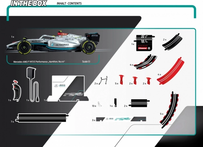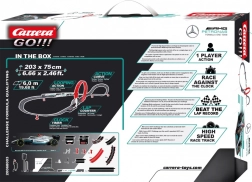 Štartujte na domácom okruhu a zažite napätie skutočných pretekov. Set Carrera GO!!! prináša realistický model vozidla Mercedes AMG PETRONAS s číslom 44 a precízne spracovanou traťou. Rýchle rovinky, zákruty a možnosť turbo zrýchlenia sa postarajú o dynamickú jazdu a skvelú zábavu pre malých aj veľkých fanúšikov F1.