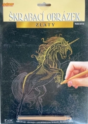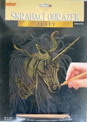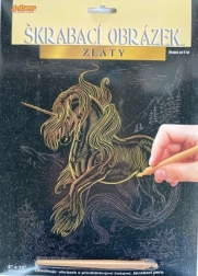 Tento škrabací obrázok poteší všetkých milovníkov jednorožcov. Na čiernom podklade sa skrýva zlatá vrstva, ktorá po zoškrabaní predtlačených línií odhalí nádherný motív jednorožca. Vďaka jednoduchému postupu je výrobok skvelý pre začiatočníkov aj malých výtvarníkov.