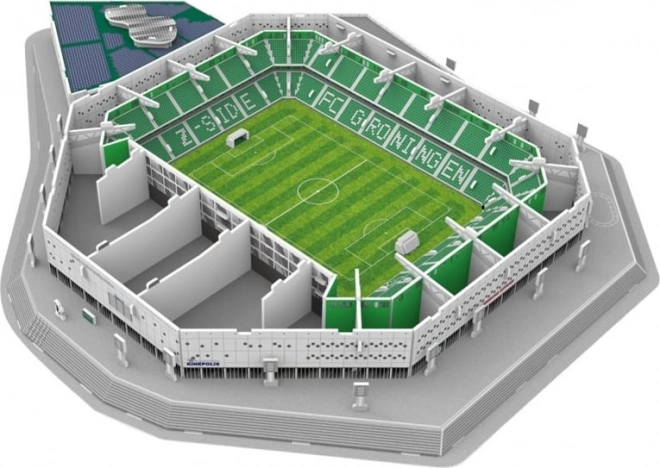 Užite si skladanie detailnej repliky futbalového štadióna Hitachi Capital Mobility, domáceho ihriska FC Groningen, bez potreby nožníc alebo lepidla.
