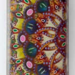 - Plátno s predtlačeným motívom, aplikačné pero, miska, vosk, sada farebných kamienkov