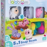 Lalaboom stavebnica umožňuje deťom učiť sa a rozvíjať sa vo vlastnom tempe. S jednotlivými korálkami a ich štruktúrami sa zlepšuje jemná motorika a otočné pohyby zápästí.