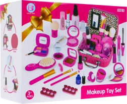 Sada s taštičkou naplnenou až po okraj bezpečnými doplnkami na líčenie je hračka pre deti od 3 rokov. Elegantný a veľký kufrík je vyrobený z mäkkej ekokože. Má pohodlnú rukoväť, štyri nožičky na spodnej strane a vnútorné zrkadielko. Zapína sa na zips. Celá sada pozostáva z 22 položiek, obsahuje kozmetiku, ako sú tiene, trblietky, rúže, lak na nechty, riasenka a mnoho ďalšieho. Kozmetika je atrapa, ale vyzerá realisticky, neopotrebúva sa a detská pokožka bude v bezpečí. Hra s kozmetikou rozvíja kreatívne myslenie, cvičí predstavivosť, podporuje sústredenie.