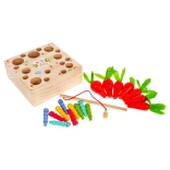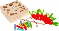 Obsahuje drevenú dosku, mnoho rôzne veľkých mrkvičiek a červíkov spolu s magnetickou udicou.