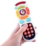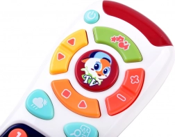Ovládač ponúka zapnutie/vypnutie, melódie a zvuky, ovládanie hlasitosti, prepínanie kanálov aj zmenu režimov. Vďaka funkciám hovoriacim po anglicky sa dieťa hravo zoznámi s prvými slovíčkami a rozvíja jemnú motoriku aj zmyslové vnímanie.