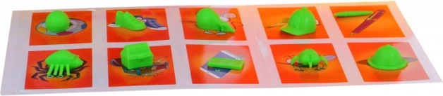 • 10 predmetov: pierko, klobúk, šiltovka, motýlik, myš, telefón, topánka, truhlica s pokladom, lopta, pavúk,