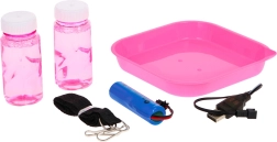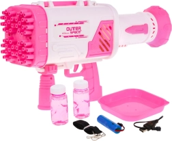 Bublinková pištoľ pre deti 3+ s ventilátorom a náplňou – Ružová