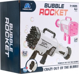 Zábavná bublinková pištoľ s futuristickým dizajnom vytvára stovky bubliniek vďaka hlavici s 52 otvormi a efektným LED osvetlením. Súčasťou je nabíjací akumulátor 3,7 V, dve fľaštičky roztoku a príslušenstvo pre pohodlné hranie. Dá sa použiť aj ako malý prenosný ventilátor – ideálne von aj na detské oslavy.