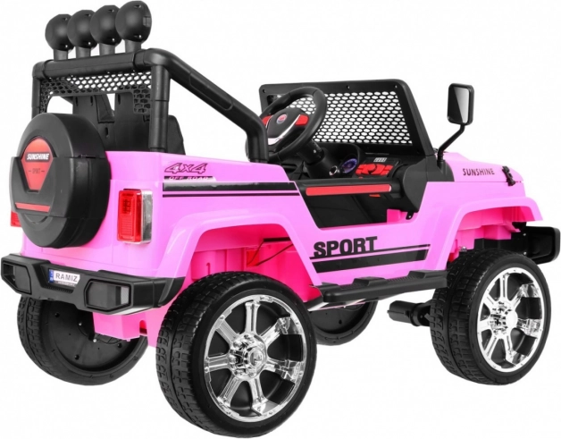 Štýlové ružové elektrické autíčko do terénu Raptor Drifter ponúka pohon 4x4, plynulý rozjazd, diaľkové ovládanie 2,4 GHz a LED osvetlenie. Vďaka mäkkým EVA kolesám, sedadlu z eko kože s pásmi a audiopanelu s Bluetooth/MP3/FM je ideálne na bezpečnú a zábavnú jazdu. Praktický odkladací priestor v rezervnom kolese a skladacia transportná rukoväť uľahčia každodenné používanie.